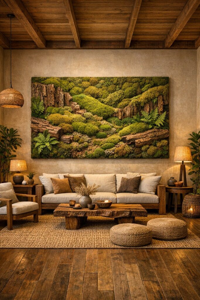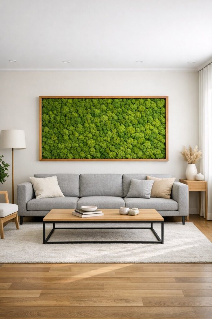 Let me start with a confession: I am terrible at keeping plants alive. It’s not intentional—I admire them, I name them—but somehow I always forget that tiny detail called watering. If you relate and still dream of a living room that feels calm, lush, and spa-worthy, moss wall art might just be your soulmate.
