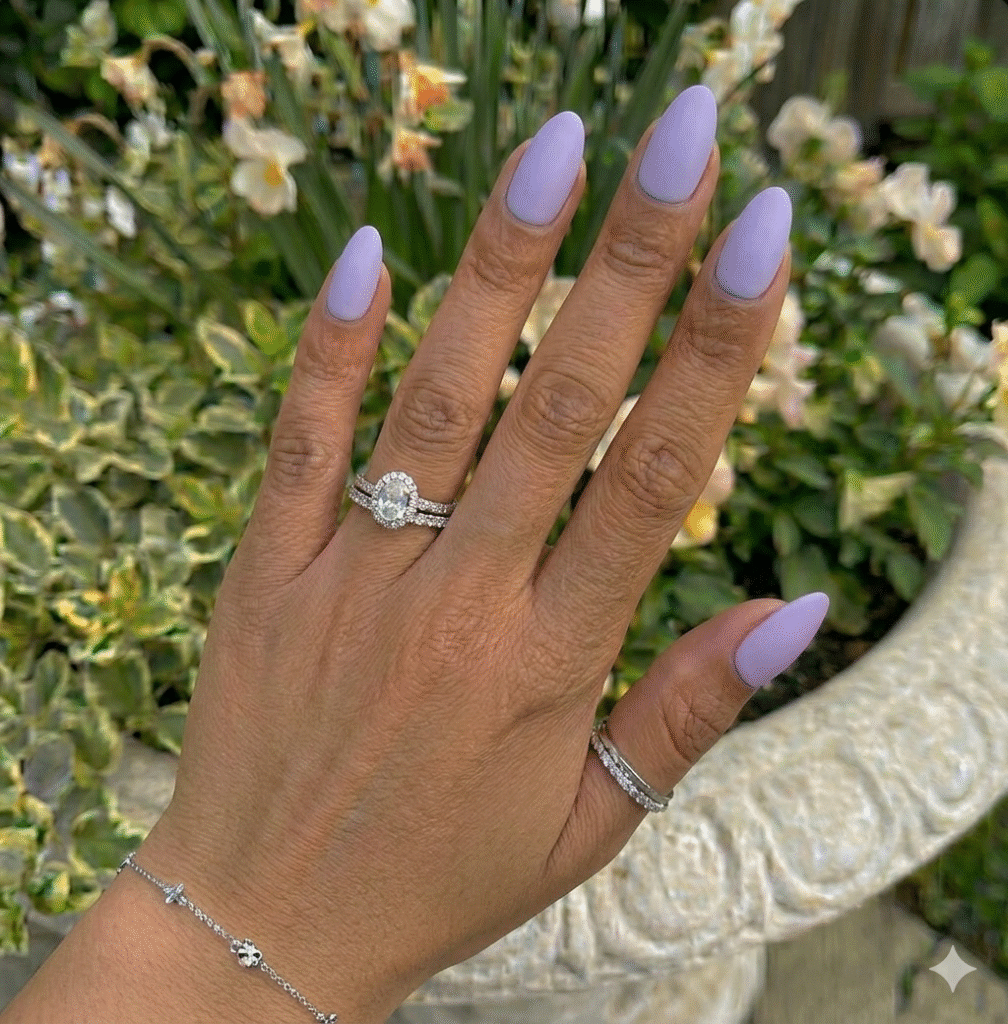 Lavender is one of the most popular spring shades every year. A full matte lavender manicure looks soft, feminine, and calming.