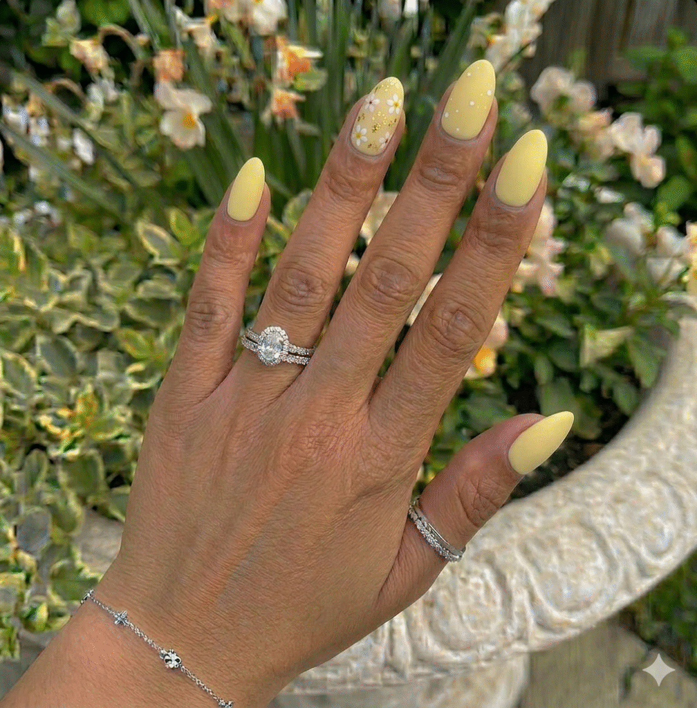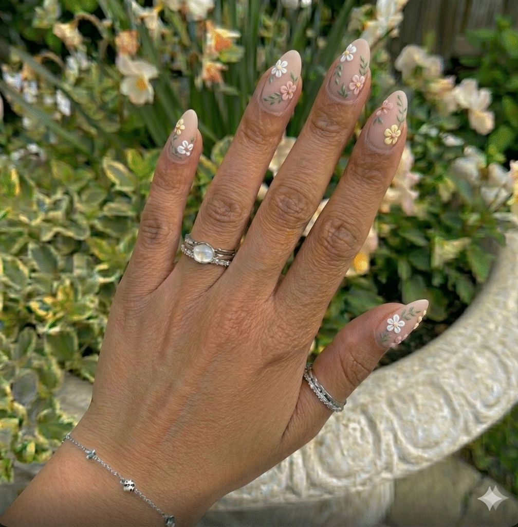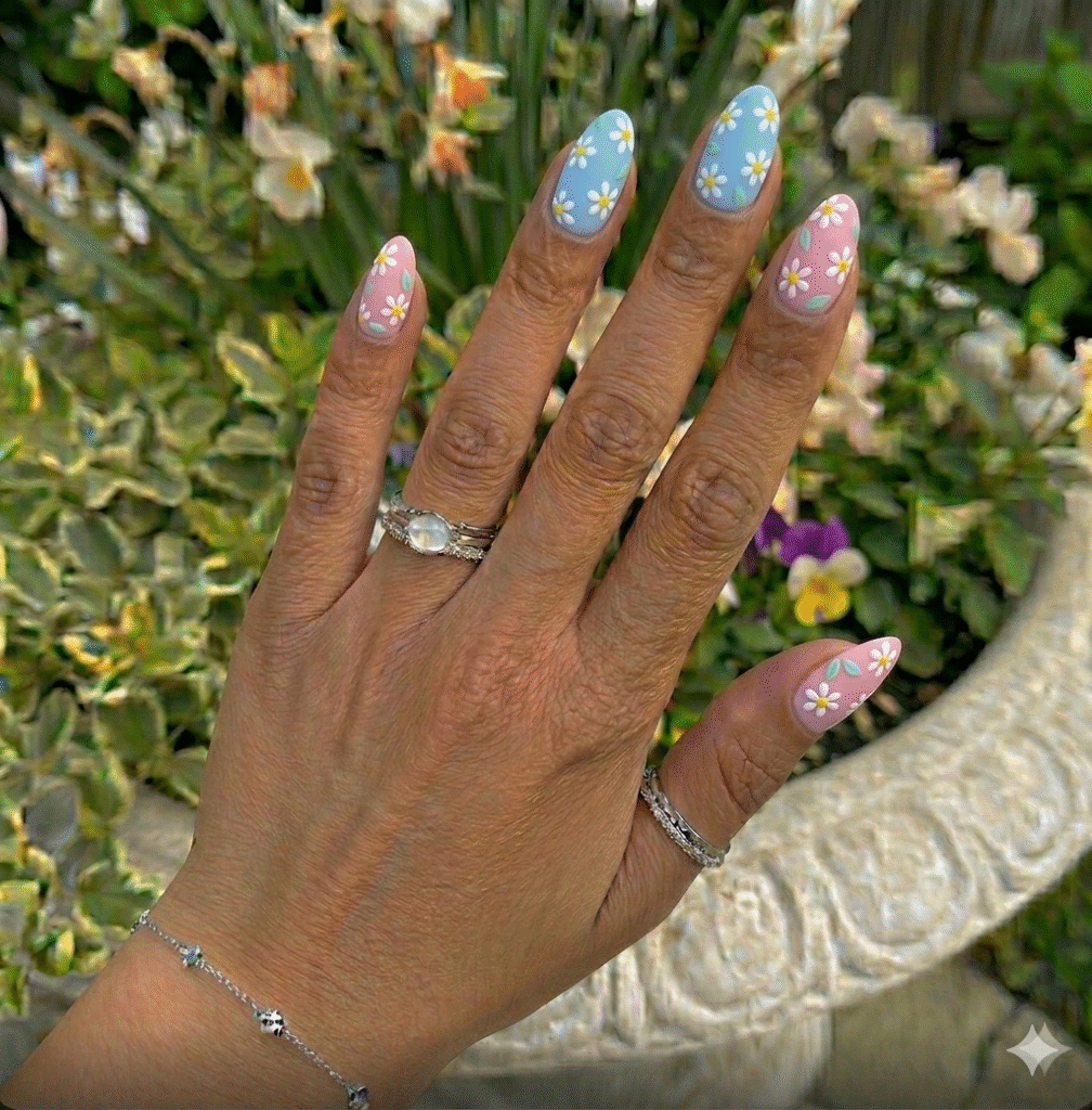 Daisies are simple, cheerful, and perfect for spring. A matte pastel base with small white daisies adds charm without overwhelming the design.