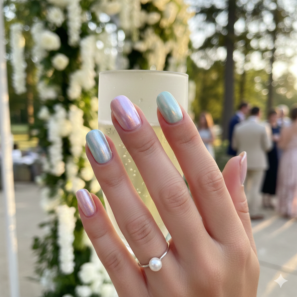 Want something extra but still soft? Add a subtle chrome finish over pastel colors.