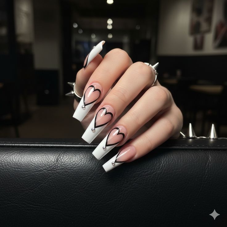 Not everyone wants soft and sweet for Valentine’s Day — and Edgy Elegance Nails are here for the bold ones. Picture a white French tip on a near-black or deep charcoal base, accented with red heart details or chrome nail art. It’s dramatic, confident, and completely unforgettable. A perfect choice if your Valentine’s aesthetic leans more dark romance than pastel sweet.