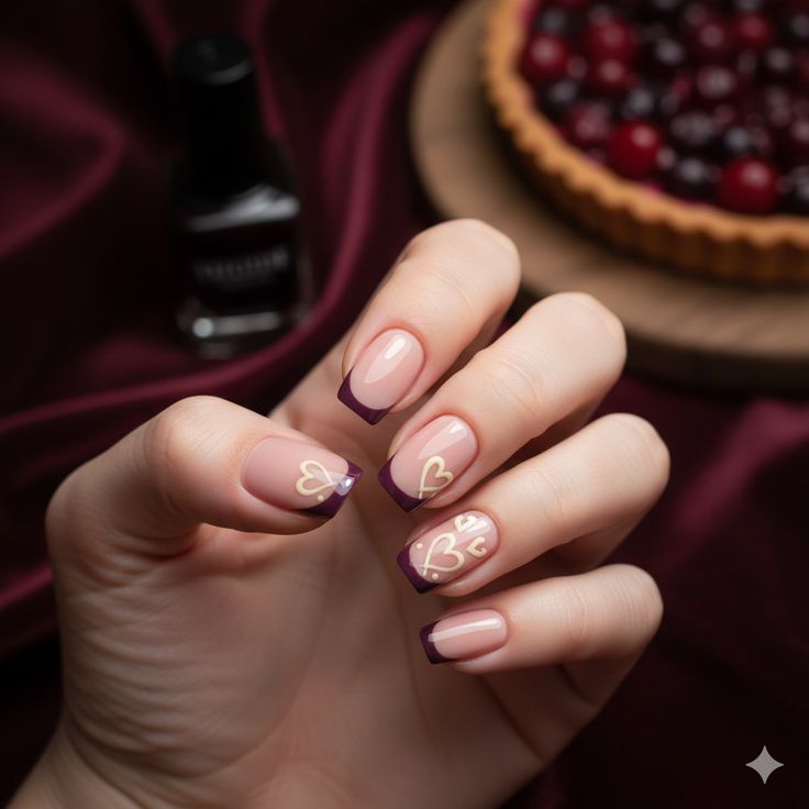 13. Berry Heartbeat Nails
