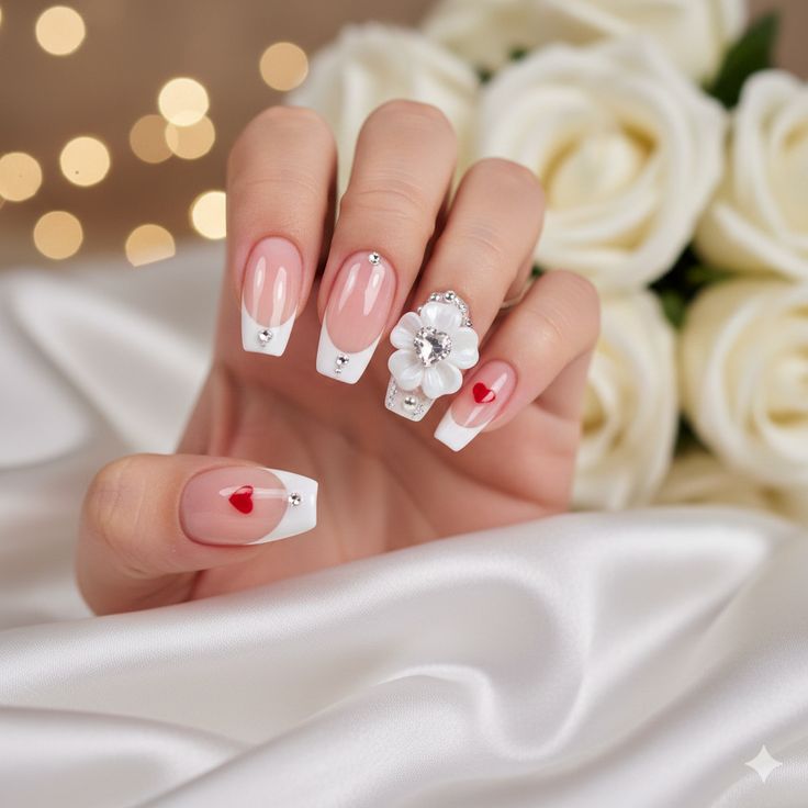 Best for: Valentine’s Day statement nails, romantic souls, unique French tip lovers