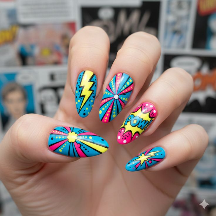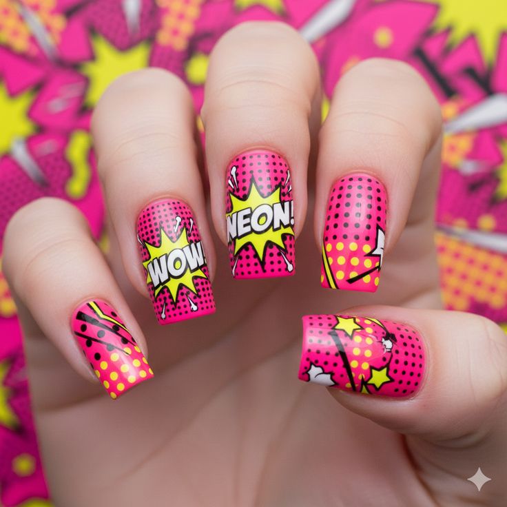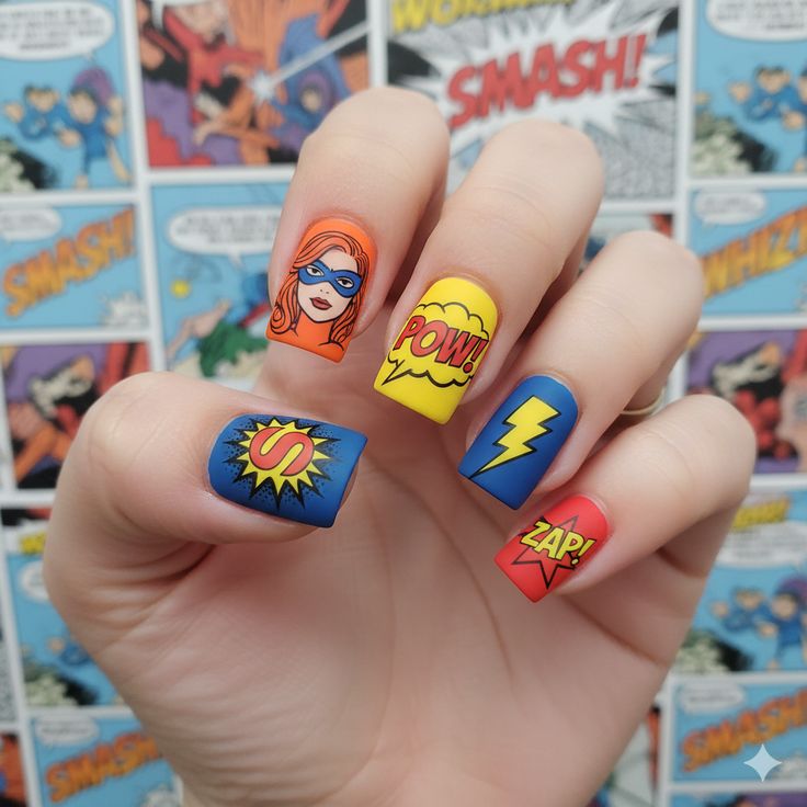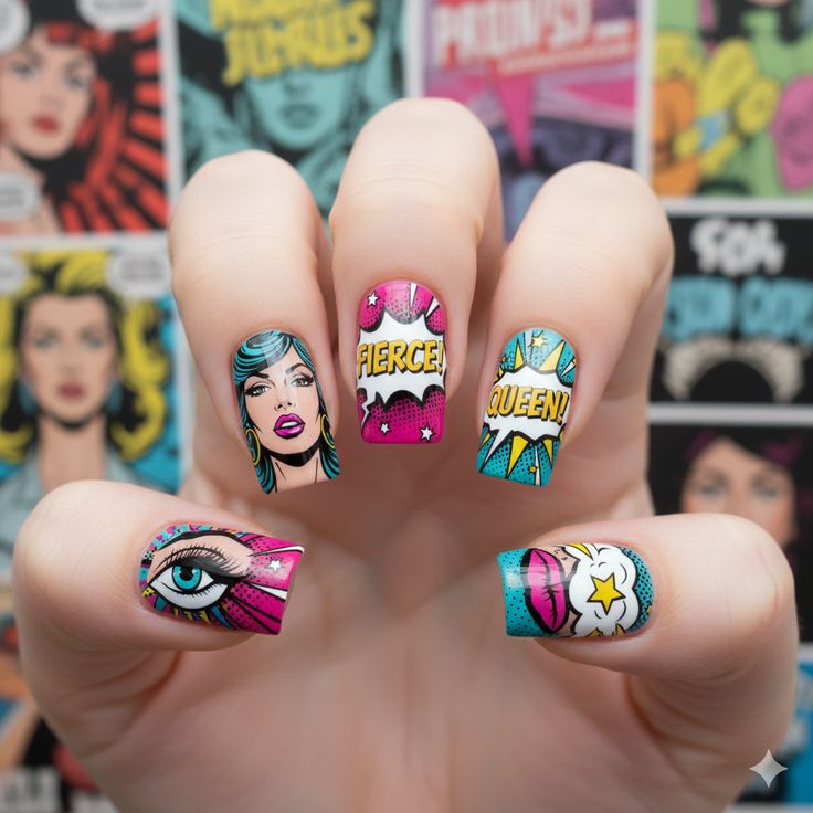 Best for: Comic book fans, superhero aesthetic, bold and graphic nail art lovers, pop art purists