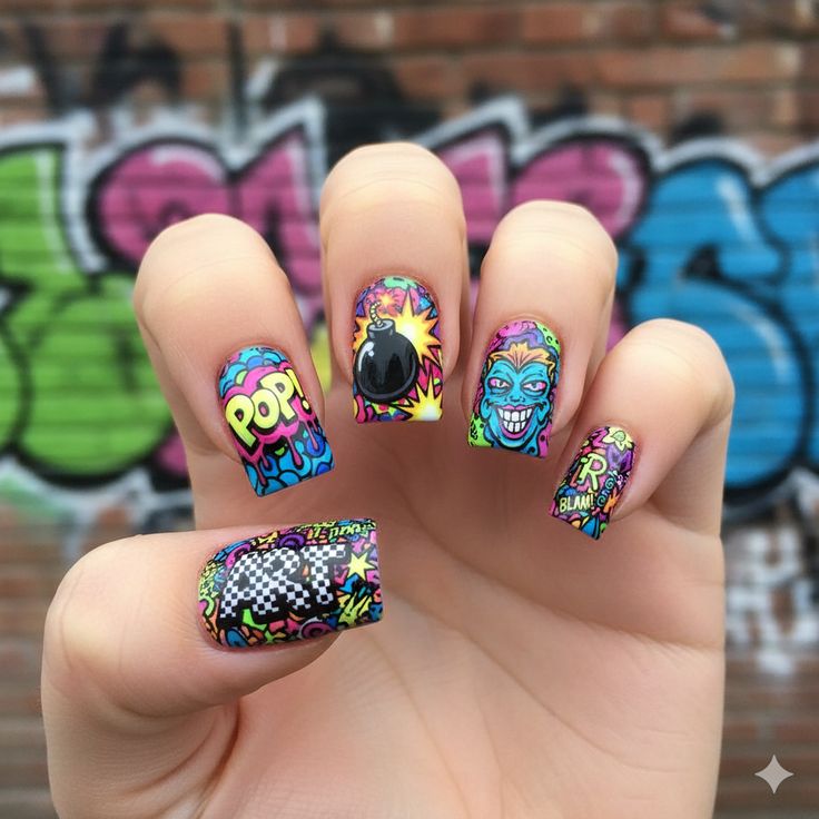 Best for: Street art lovers, urban aesthetic, edgy maximalist nail art, creative personalities