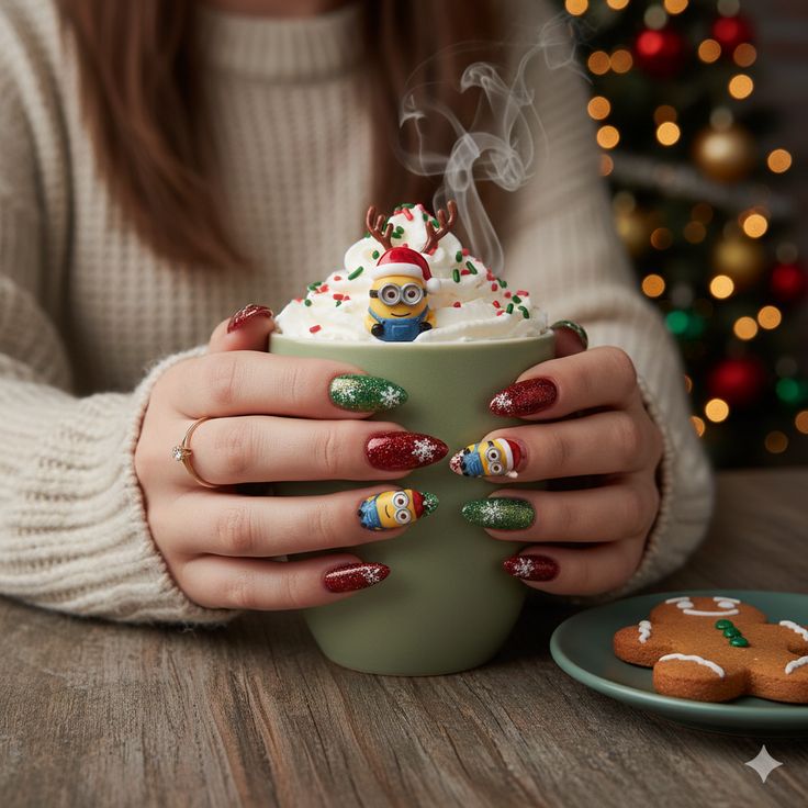 Best for: Christmas season, holiday parties, festive nail lovers Vibe: Red, green, Minion yellow, holiday cheer