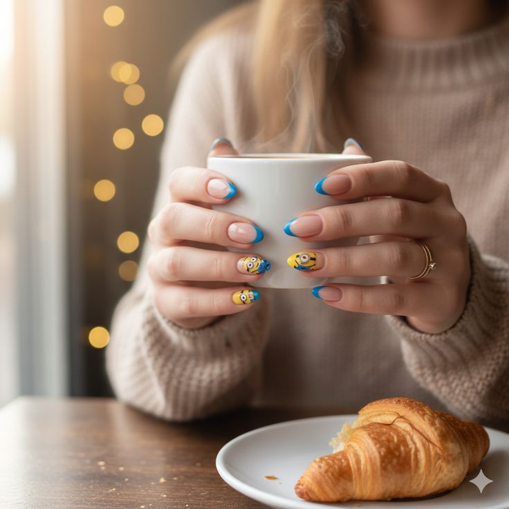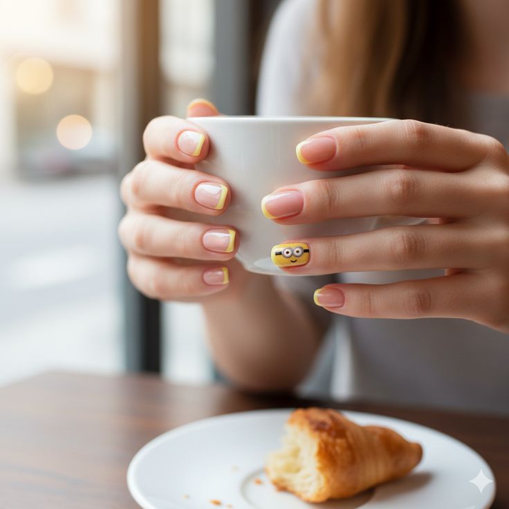 Best for: French tip enthusiasts, Minion fans who want elegance Vibe: Clean French structure, Minion character tips, polished and playful