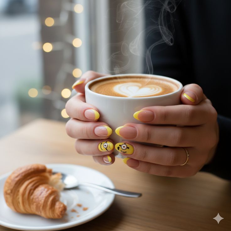 Best for: Playful nail art, clever designs, anyone who loves a reveal Vibe: Nude or neutral base, Minion yellow peek, goggles just visible