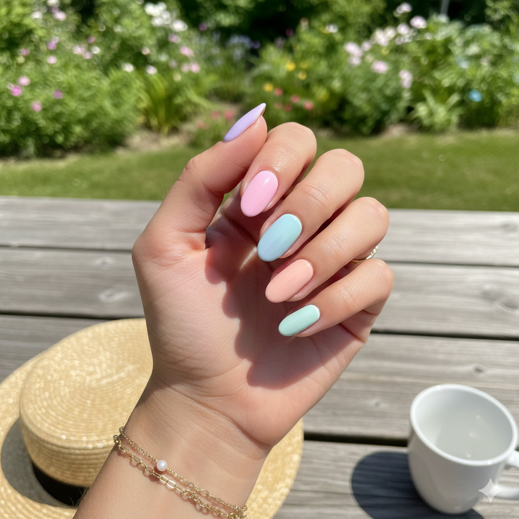 Paint each nail a different pastel shade: