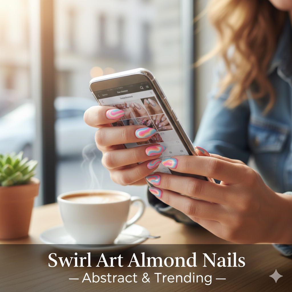 13. Swirl Art Almond Nails