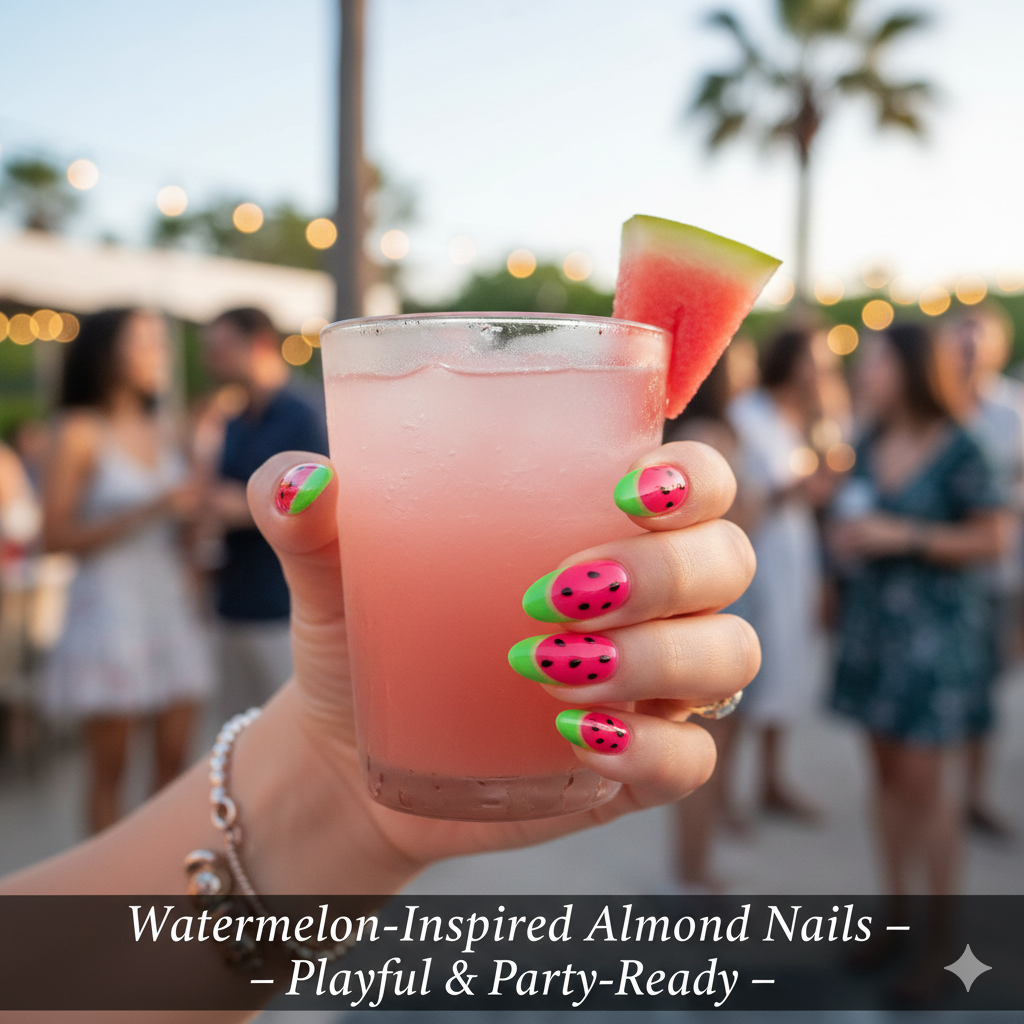 17. Watermelon-Inspired Almond Nails