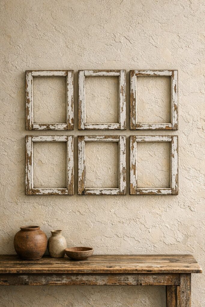 Forget perfect symmetry and shiny frames. We’re leaning into weathered wood, iron, handmade details, and imperfections that feel honest. Let’s turn those empty walls into something soulful—without crossing into cluttered-attic territory.