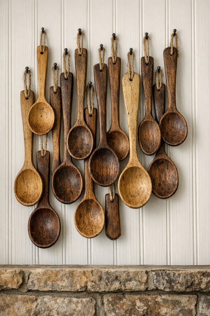 Hand-carved wooden spoons bring a humble, folk-art warmth that feels deeply personal. They hint at shared meals, tradition, and everyday craftsmanship. Best part? They’re easy to find and budget-friendly.