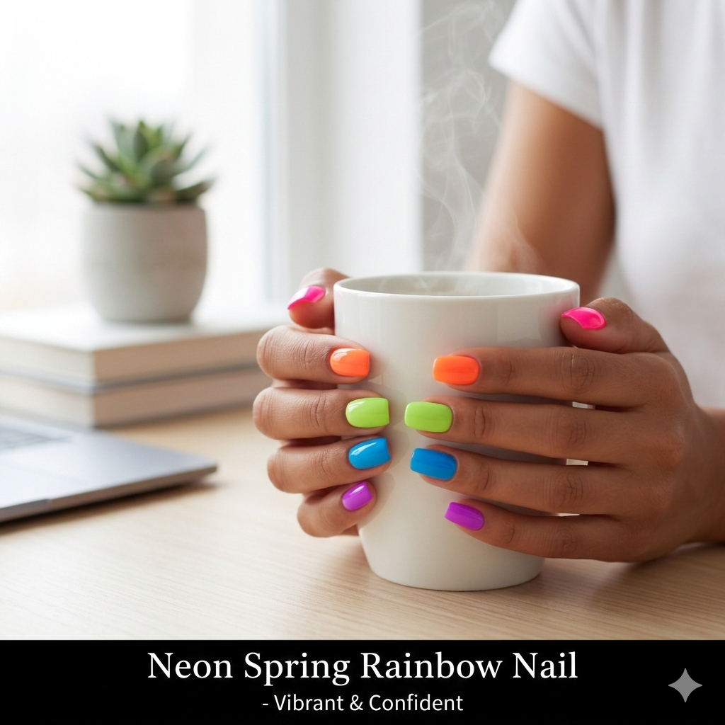Spring rainbow nail designs aren’t just a trend — they’re a mood. They represent brightness, growth, and playfulness. Whether you choose soft pastels or bold neons, minimal lines or artistic swirls, the goal is simple: