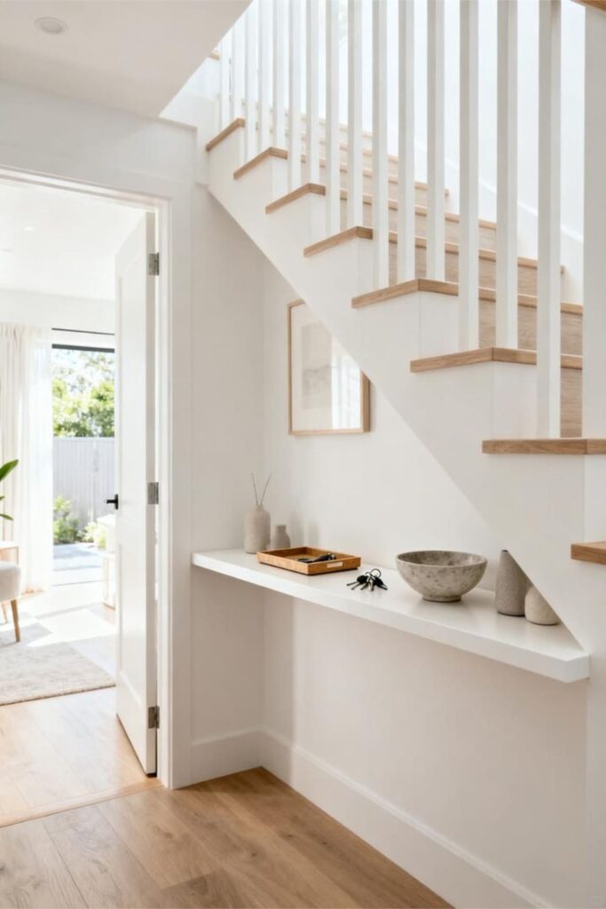 A floating console under the stairs instantly makes your home feel organized—even if it’s a lie.