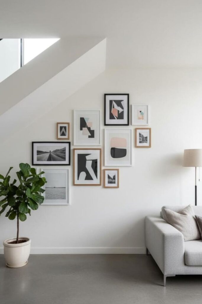6. Statement Gallery Wall That Fills the Angle Perfectly